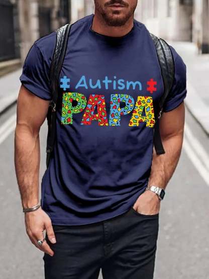 Men's Autism PAPA Autism Awareness Print T-Shirt