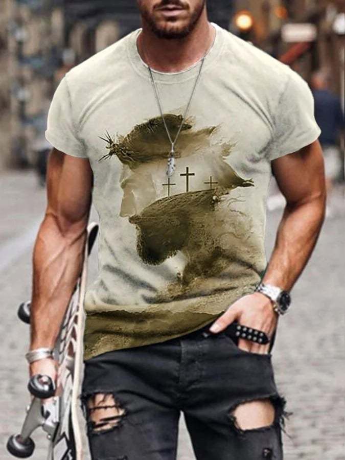 Men's Faith Oil Painting Print Crew Neck T-Shirt