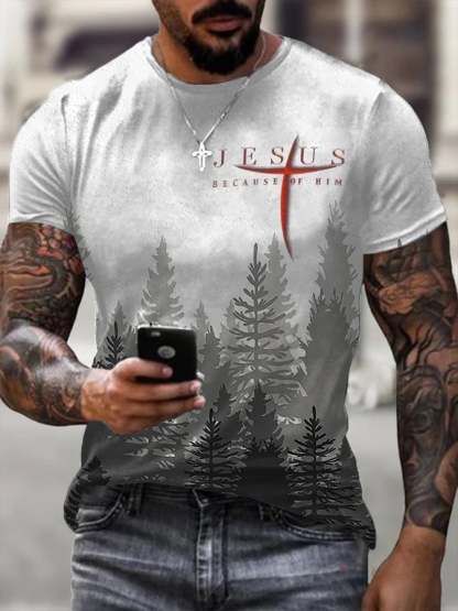 Men's Jesus Because Of Him Print Casual T-Shirt