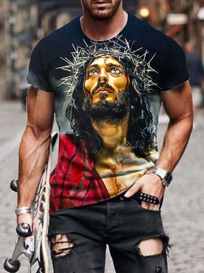 Men's Jesus Print Short Sleeve T-Shirt