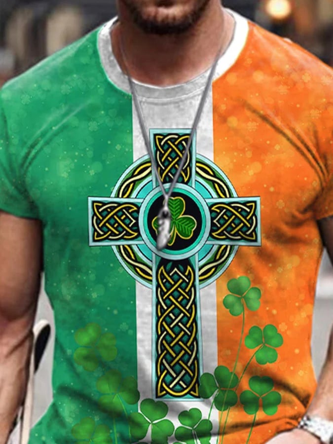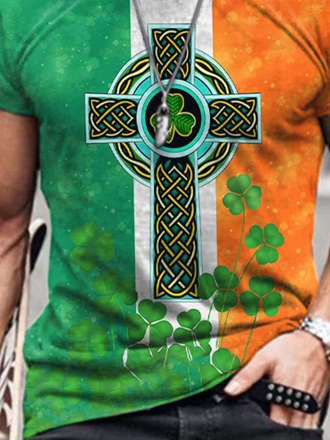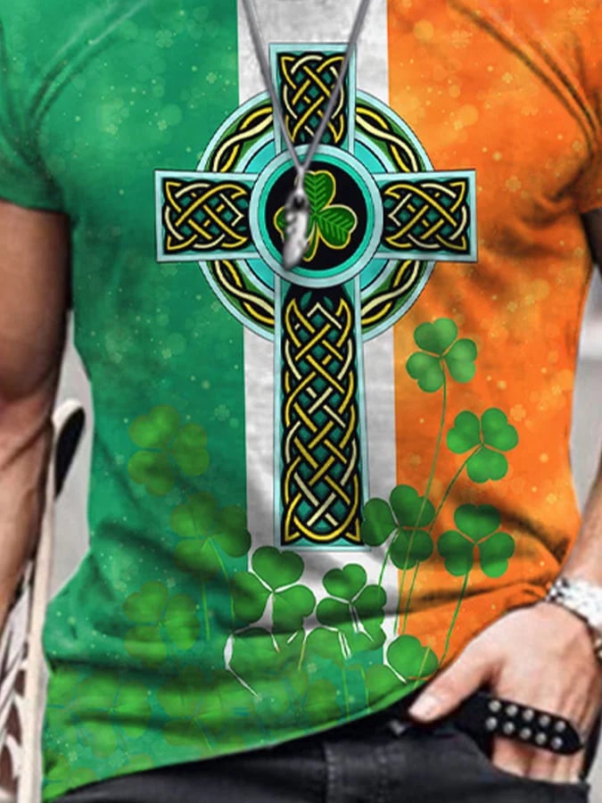 St. Patrick'S Day Shamrocks Irish Celtic Knot Cross Print T-Shirt