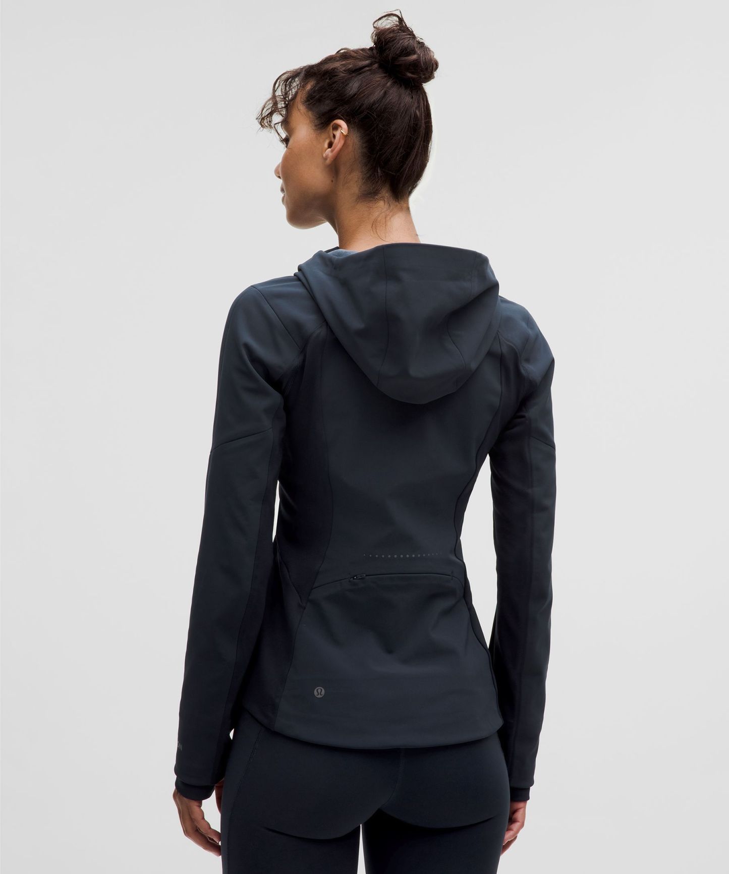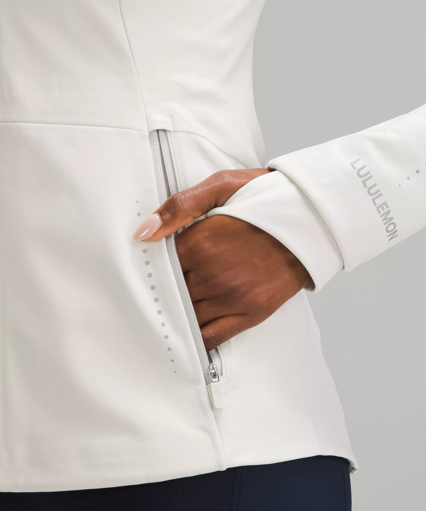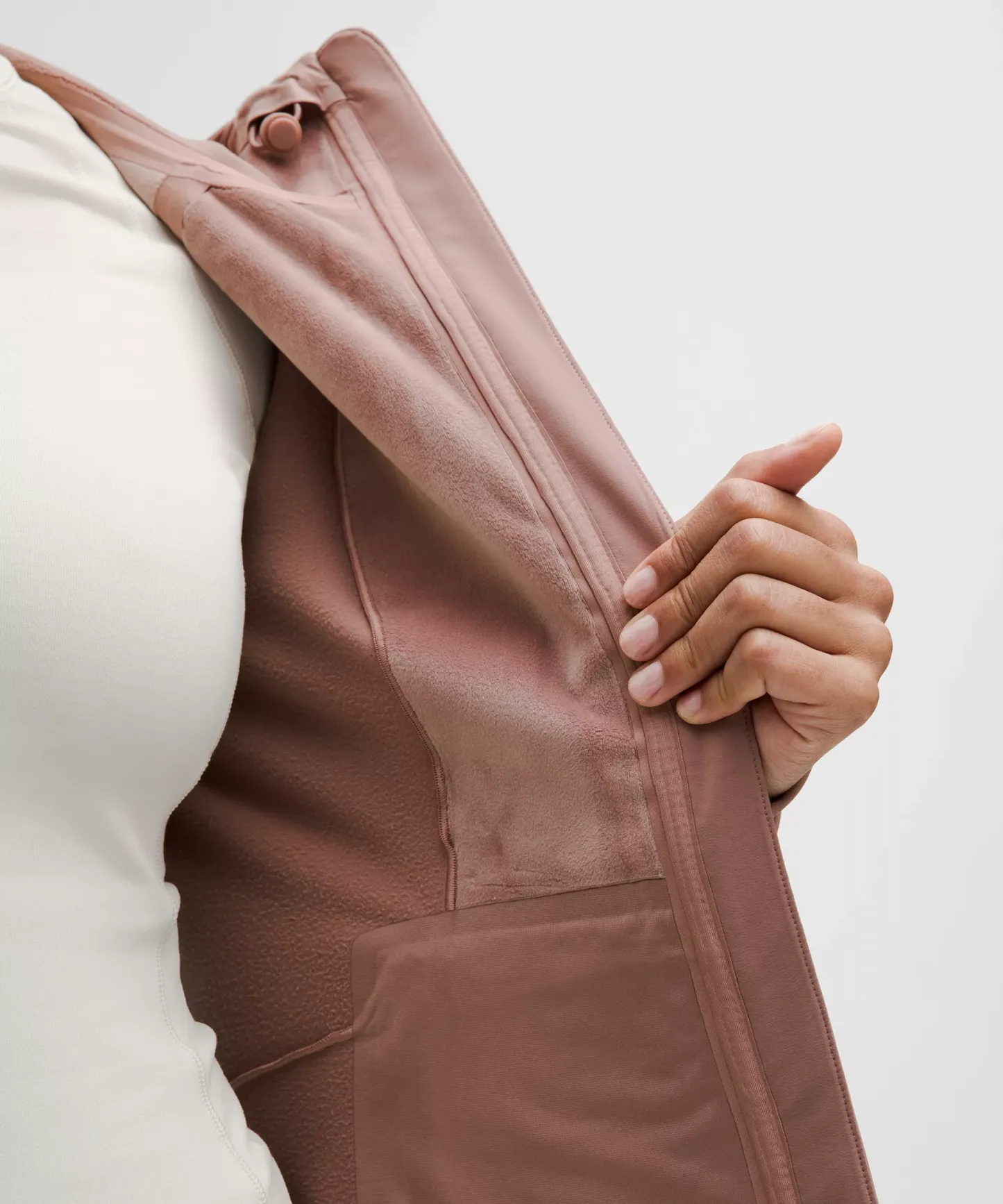 Four-way stretch, water-repellent tech fleece fabric is brushed for warmth