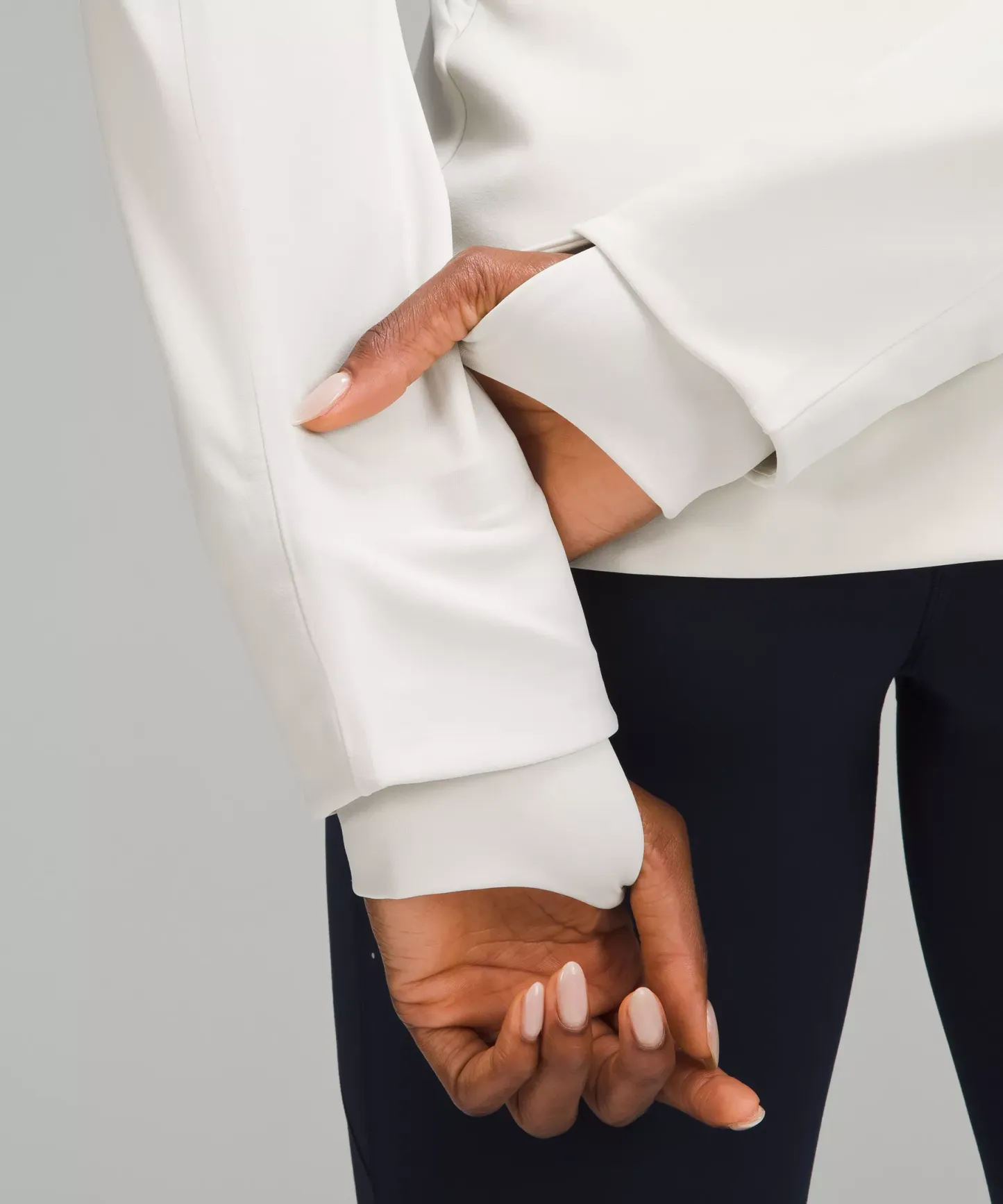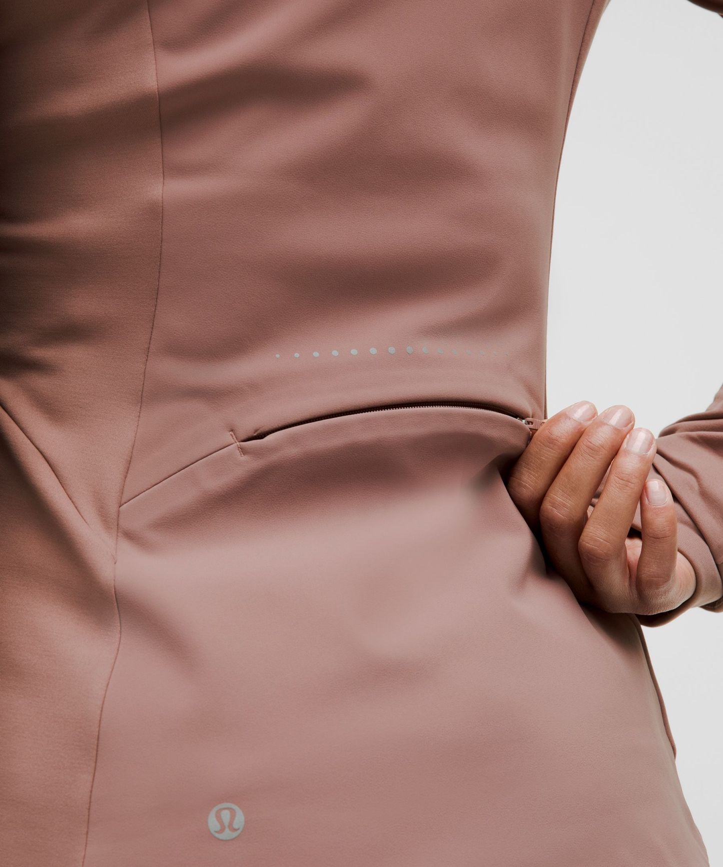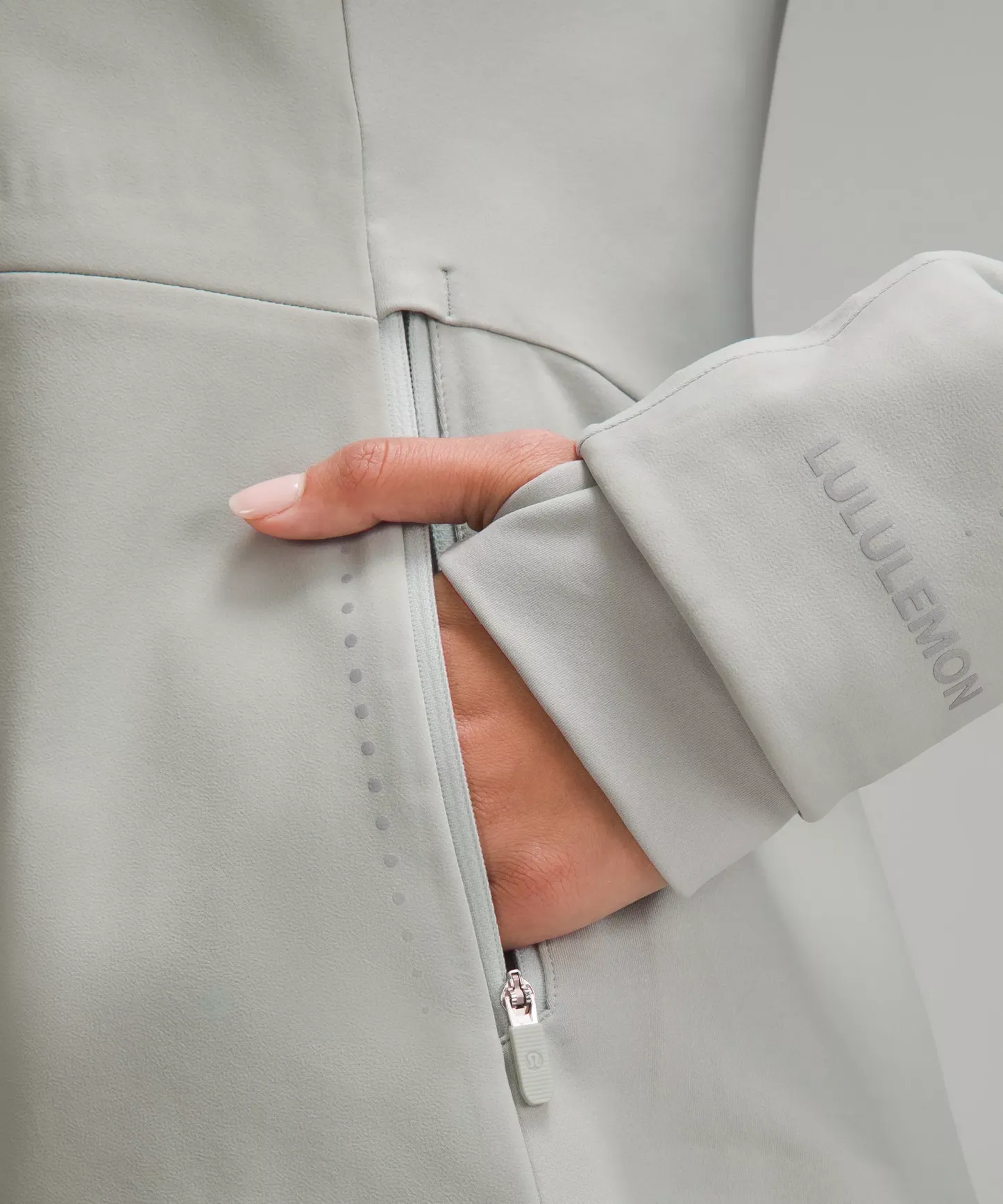 Four-way stretch, water-repellent tech fleece fabric is brushed for warmth